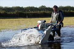 Wij zetten dan onze velden onder water en gaan er met een speciale machine doorheen.