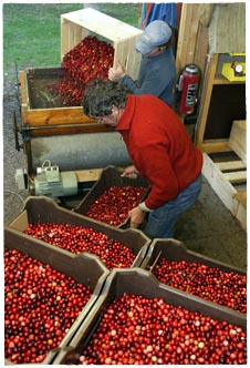 Als de cranberry’s goed rijp zijn beginnen we met de droge oogst, wij